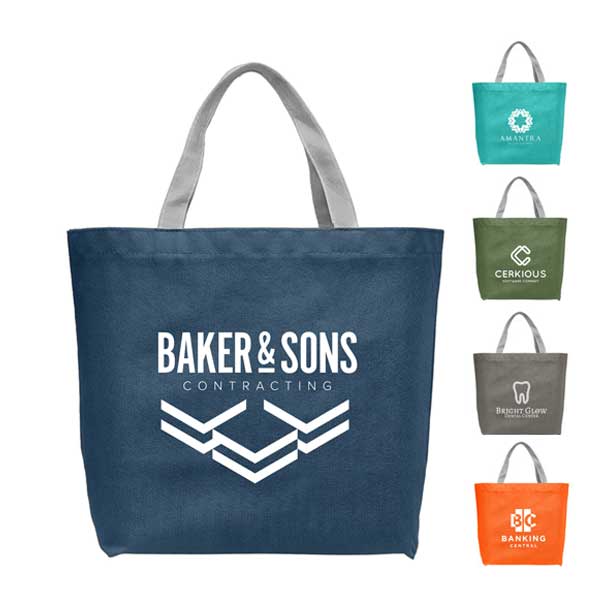 The Julian Eco tote uses Recycled PET Plastic (RPET), making this is a great way for businesses to share their brand in a sustainable way. The stylish gray straps and nature-inspired bag colors add to this bags’s appeal. This tote bag measures 20″ wide x 13″ high, with 20″ handles and an 8″ wide gusset for additional packing capacity, so it’s ideal for shopping. This tote bag’s large 1-color silkscreen imprint area is perfect for advertising your company, each and every day.