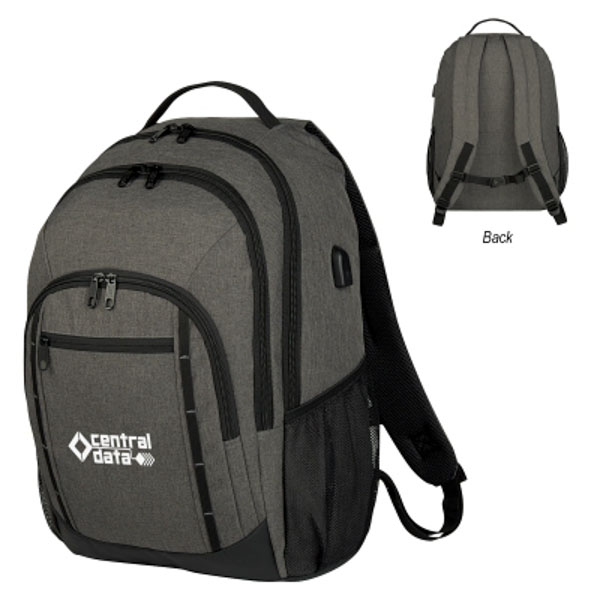 Made Of 300D Polyester Adjustable Padded Shoulder Straps With Storage Loops And Carrying Handle Large Front Double Zippered Compartment With Inside Pocket And Multiple Accessories Compartments 2 Front Zippered Pockets With Storage Loops 2 Side Mesh Pockets Features 37″ USB Cord Inside With Outside Charging Port For Easy Charging Access Adjustable Sternum Strap For Secure Fit Double Zippered Main Compartment With Laptop Pocket And Padded Back Power Bank Not Included Accommodates Most Tablets And Laptops Up To 15″ Spot Clean/Air Dry