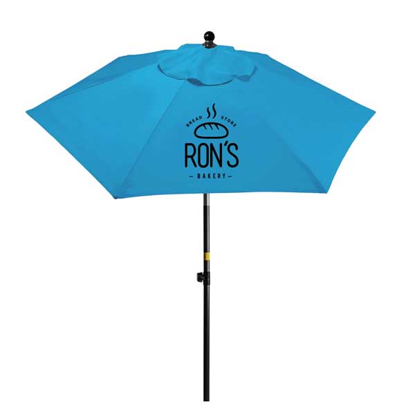 The Steel Market Umbrella offer some much needed shade at outdoor dining areas and many other venues with this market umbrella! Measuring 7 feet, features of this umbrella include 6 panels, wood-grain finished steel frame with tilt, traditional steel ribs, plastic ferrule and runner, and a heavy 8 oz. UV treated polyester cover. A great way to get your brand name or logo noticed.
